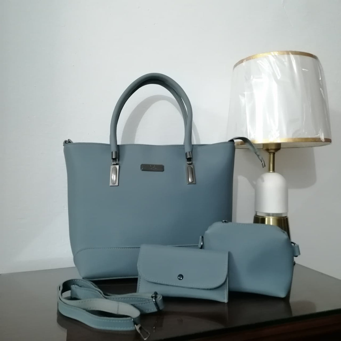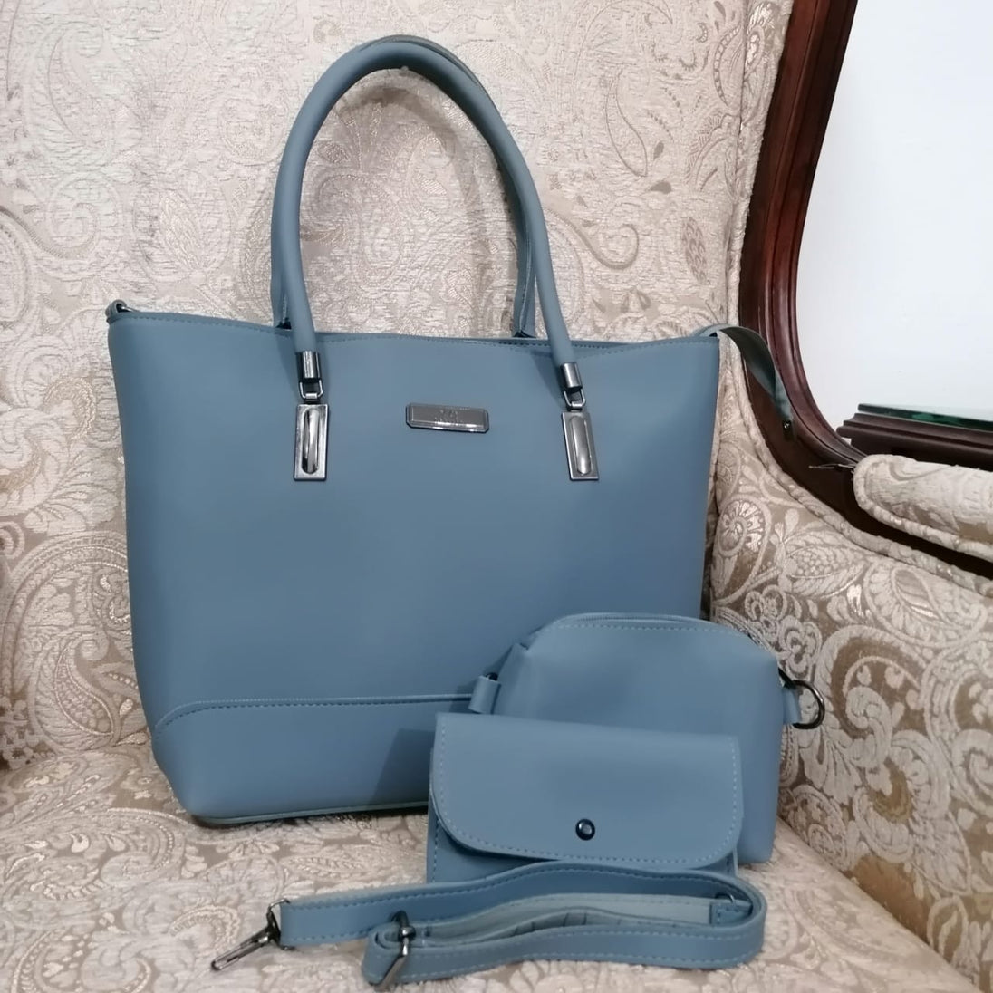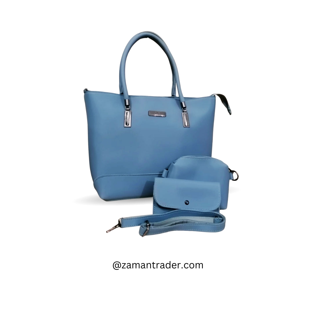 The Trendy & Classic Women Tote Bag 3 in 1 in Baby Blue combines versatility and style, adapting to your daily needs with three functional compartments. Crafted with durable materials, this elegant tote offers ample space for your essentials while maintaining a sleek, fashionable look. Its soft baby blue shade adds a subtle, modern touch suitable for both casual and professional settings. Ideal for women seeking a practical yet sophisticated accessory that complements various outfits and occasions.